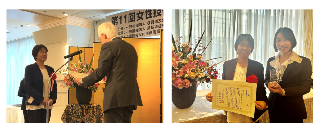 授賞式には理事長の行木が登壇し、これまでの活動を振り返りながら、支えてくださった会員の皆さまや関係者の方々へ感謝の気持ちをお伝えしました。続くシンポジウムでは、女性技術者を取り巻く環境の変化や、これから必要とされるスキルやキャリアの築き方について、さまざまな視点から意見が交わされ、私たちにとっても学びと気づきの多い時間となりました。